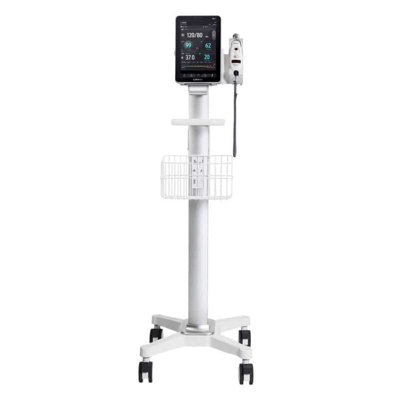 The NC6/NC7 Trolley from COMEN is designed for NC6 and NC7 patient monitors. It features an integrated 5000 mAh backup battery and a DC interface for continuous monitoring. The monitor can be securely and quickly attached with a snap-lock mount. Four smooth-rolling castors ensure easy manoeuvering, and the white basket is perfect for accessories. The push handle enhances comfort in clinical settings.